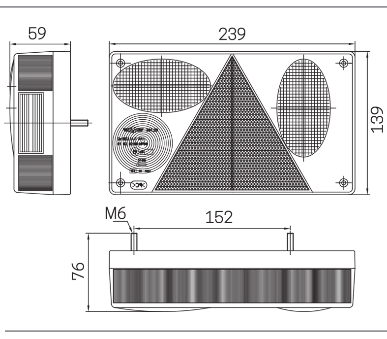 Farolim 4 funções (presença/stop, pisca e marcha atrás ou nevoeiro). Inclui ainda iluminação de chapa de matrícula.